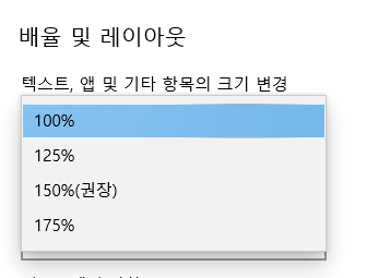 바탕화면 -> 마우스 오른쪽 -> 디스플레이 설정 ->배율 및 레이아웃을 100%로 설정해주세요