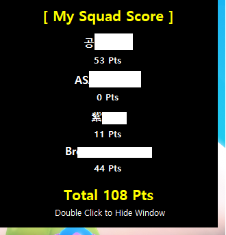 스쿼드 (듀오) 완주시 본인 스쿼드의 점수를 표기합니다.